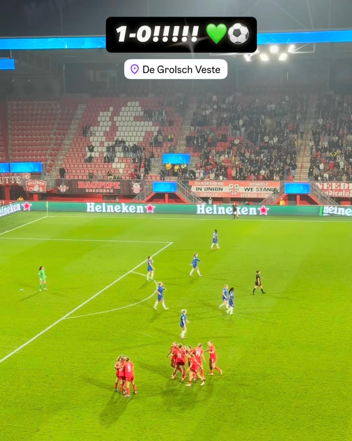 Afgelopen woensdagavond hebben de meiden van MO17-1 een gezellig teamuitje gehad naar De Grolsch Veste. Ze hebben daar een mooie wedstrijd bijgewoond tussen FC Twente vrouwen en Chelsea, in de hoofdfase van de UEFA Women’s Champions League. Met een eindstand van 1-1, waar ze trots op mogen zijn. De kaartjes voor deze wedstrijd hebben onze meiden aangeboden gekregen door Reggeborgh Foundation: de hoofdsponsor van FC Twente Vrouwen.