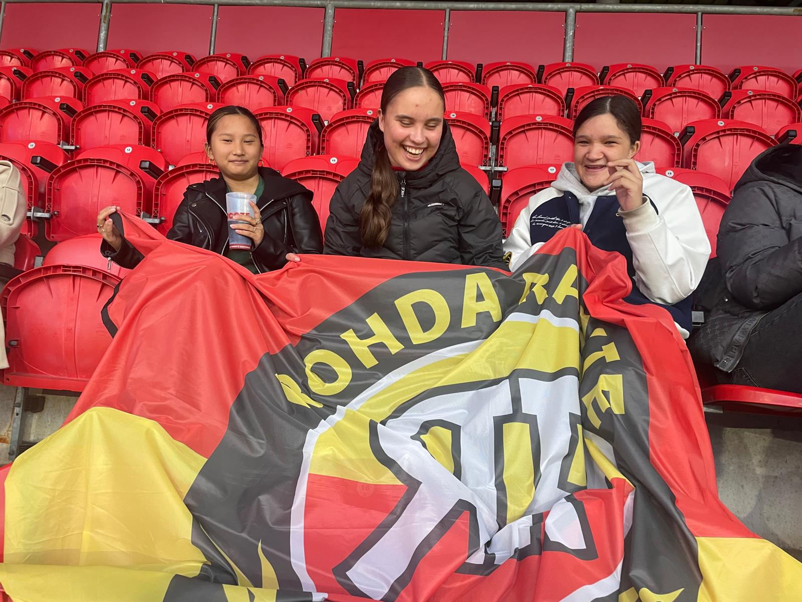 Team en leiding gingen met z’n allen met de trein - het was een gezellige boel, zowel tijdens de reis als op de tribune! Uiteraard hadden ze de ROHDA-vlag mee. Een aantal meiden heeft gebruikgemaakt van de kans om ballenmeisje te zijn. Een superleuke ervaring!